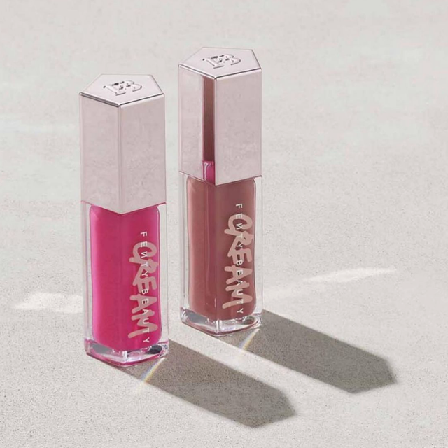 Un ensemble crémeux pleine grandeur de Gloss Bomb Cream Color Drip Lip Cream dans deux nouvelles teintes inédites, Bubble Binge, un rose poussiéreux et Cupcakin ’, un rose vif.