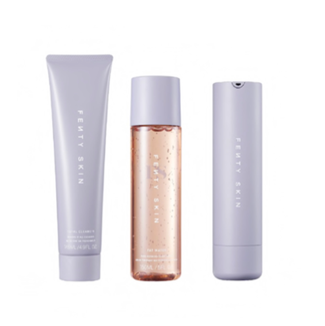ETAPE 1 - NETTOYER : Total Cleans’r vous apporte le délicieux nettoyage en profondeur que vous méritez : l’onctueux nettoyant universel de Fenty Skin élimine la saleté, l’excès de sébum et le maquillage longue tenue sans décaper ni assécher. Les nettoyants à base de cerise de la Barbade et de noix de coco nourrissent la peau et en prennent soin.