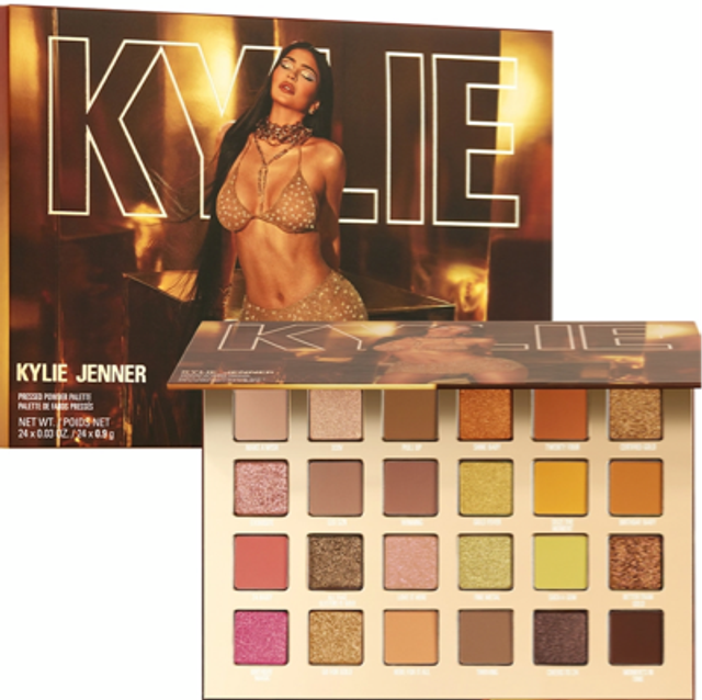Ma palette de poudre pressée Kylie Cosmetics 24K Birthday Collection en édition limitée contient 24 nuances dans quatre finitions : mat, chatoyant, métallique et pailleté. Ces formules douces glissent sans effort et offrent un rendu de couleur hautement pigmenté.