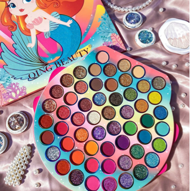 🧜‍♀️Une palette de fards à paupières inspirée des sirènes qui contient 56 nuances mates, métalliques et scintillantes, toutes cachées dans un compact coquillage irisé et de rêve.